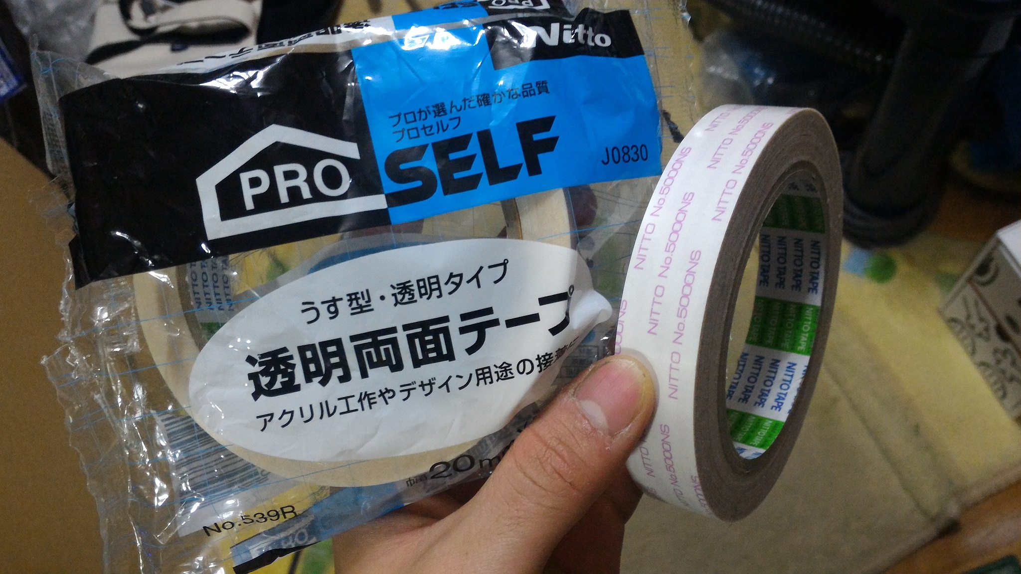 アルミ板を張り付ける両面テープは写真の2種類のテープを使ってます。