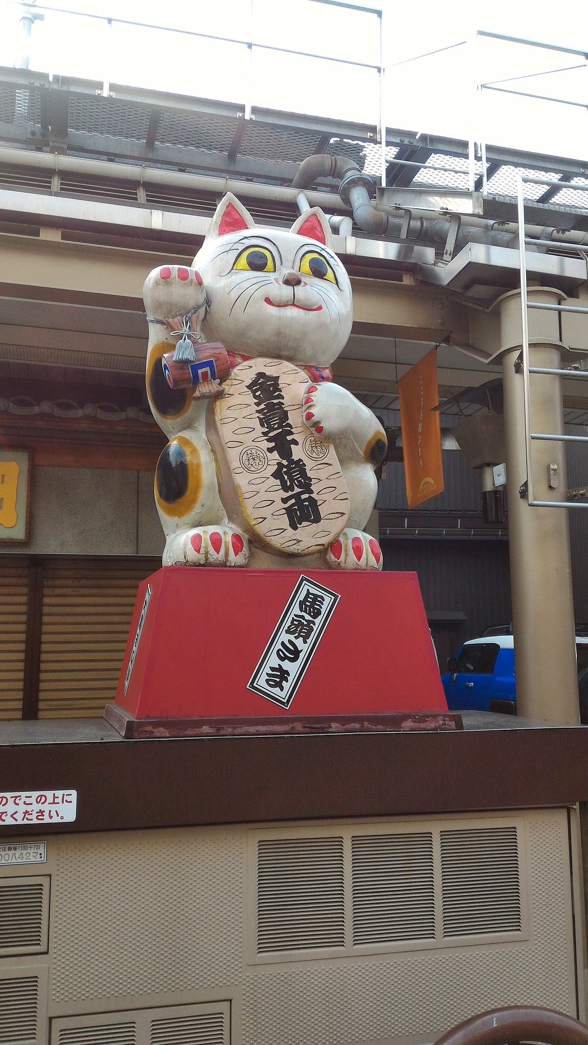 あと聖地巡礼してたら大きな招き猫がいました。