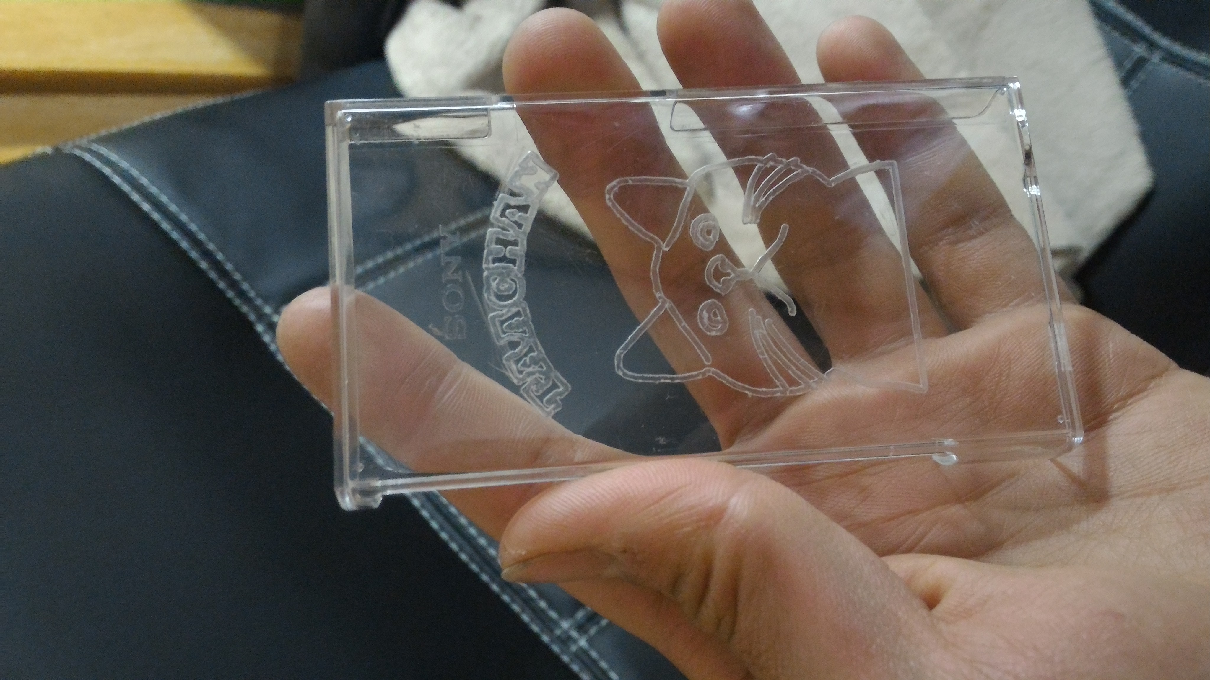 普通に染色するだけでは面白くないので、CNCで絵を掘ってみました。
